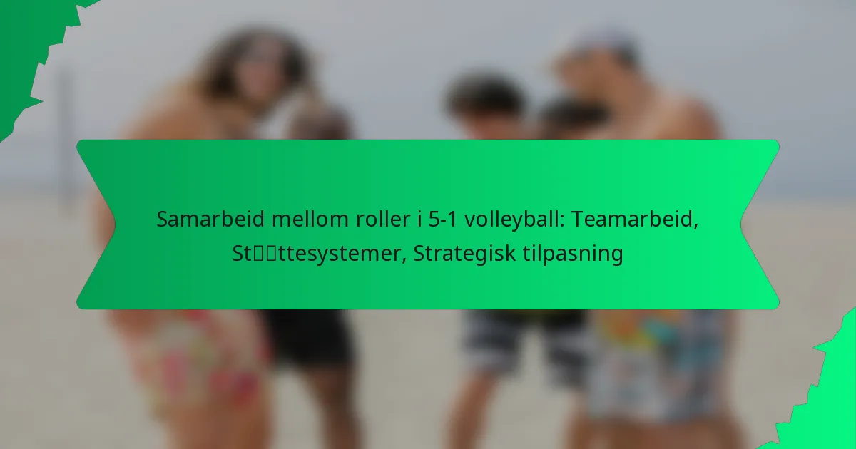 5-1 volleyballsystemet, med fem angrepsspillere og én setter, er sterkt avhengig av samarbeid blant lagmedlemmene for å optimalisere ytelsen. Ved å fremme lagarbeid, forbedre kommunikasjonen og tilpasse strategiene, kan spillerne utføre spill mer effektivt og tilpasse seg motstandernes taktikker. Støttesystemer, som strukturerte øvelser og effektiv coaching, styrker ytterligere dette samarbeidsmiljøet, og fremmer både individuell og kollektiv vekst på banen.