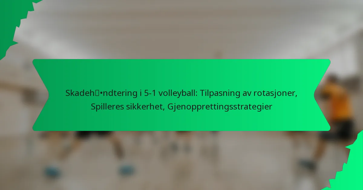 Skadehåndtering i 5-1 volleyball er avgjørende for å opprettholde spillernes sikkerhet og ytelse. Ved å tilpasse rotasjoner og implementere effektive sikkerhetsprosedyrer kan lag minimere risikoen for skader samtidig som de sikrer at spillerne holder seg på sitt beste. I tillegg er det viktig å fokusere på restitusjonsstrategier, inkludert rehabilitering og ernæring, for å legge til rette for en trygg tilbakevending til spill etter en skade.