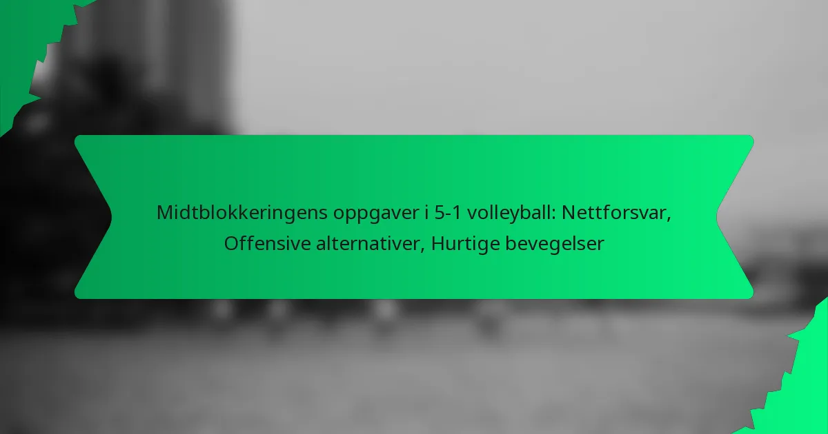 De primære oppgavene til en midtblokkering i 5-1 volleyball inkluderer nettforsvar, offensiv scoring og raske bevegelser. Denne posisjonen er avgjørende for både å stoppe motstanderens angrep og bidra til lagets offensive strategier.