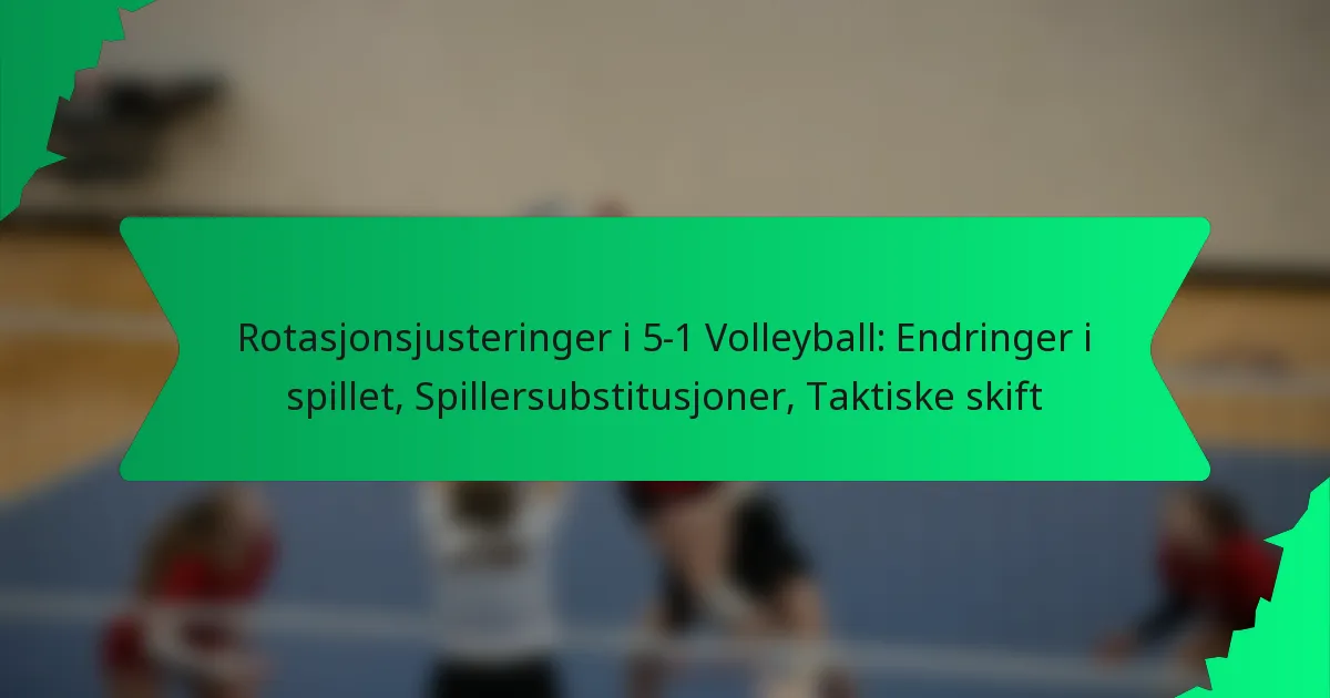 Rotasjonsjusteringer i 5-1 volleyball refererer til de strategiske endringene som gjøres under en kamp for å optimalisere spillerposisjoner og forbedre lagets ytelse. Disse justeringene er avgjørende for å opprettholde effektivt spill og tilpasse seg motstanderens taktikk.