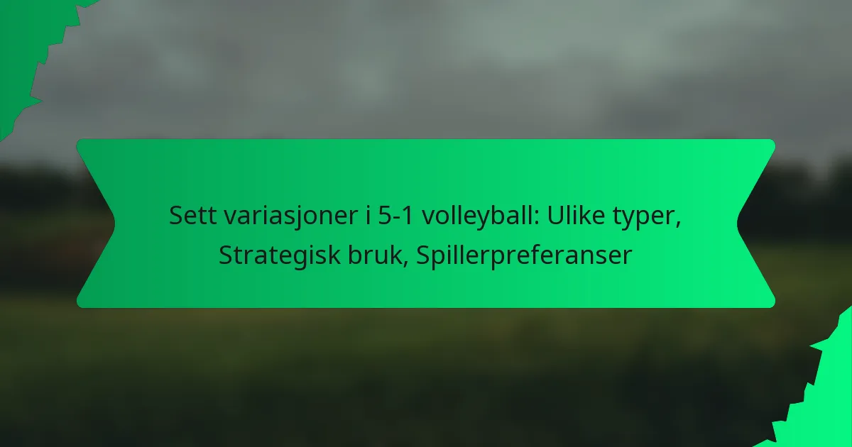 I 5-1 volleyball spiller variasjoner i oppsett en viktig rolle i å utvikle effektive offensive strategier og opprettholde uforutsigbarhet mot motstanderne. Ved å bruke forskjellige typer oppsett, som høye oppsett, raske oppsett og bakre oppsett, kan lag utnytte defensive svakheter og tilpasse tilnærmingen sin gjennom kampen. Spillernes preferanser for disse variasjonene formes av faktorer som posisjon, ferdighetsnivå og lagdynamikk, noe som gjør det essensielt for lag å forstå og optimalisere sine oppsettstrategier for forbedret ytelse.