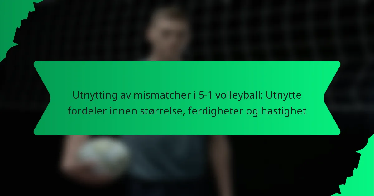 Å utnytte mismatcher i 5-1 volleyball innebærer strategisk å bruke størrelses-, ferdighets- og fartfordeler for å overmanne motstanderne. Effektive taktikker inkluderer å danne spesifikke oppstillinger, forbedre spillerkommunikasjon og gjøre justeringer i sanntid basert på motstanderens svakheter.
